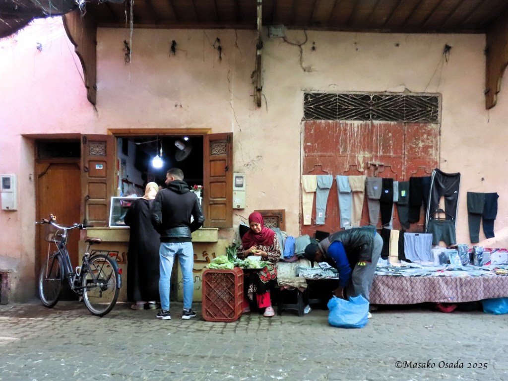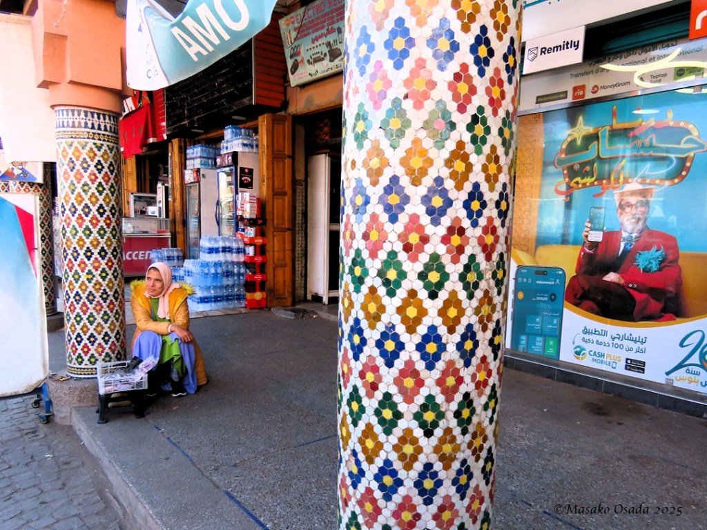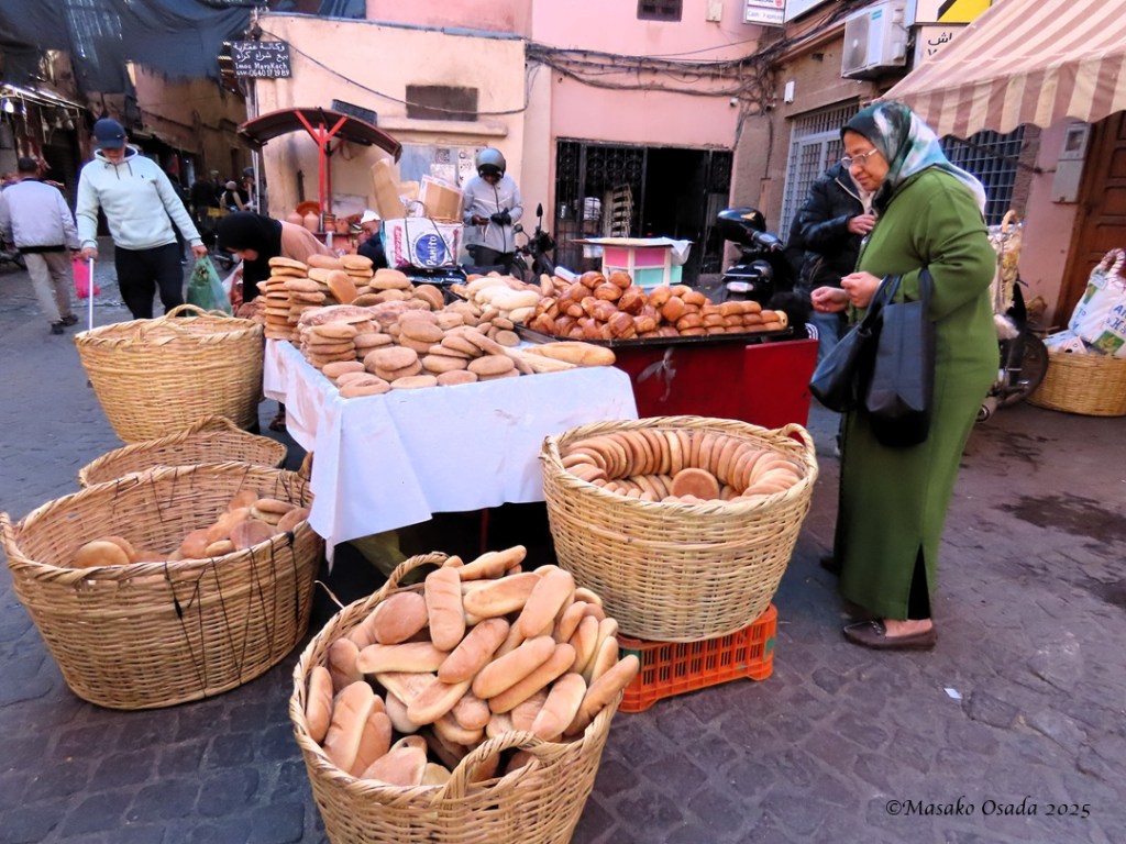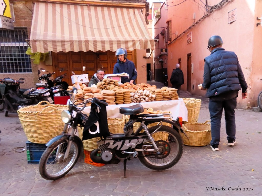 Breakfast time. Marrakech, November 2025Bread seller. Marrakech, November 2025. A big round bread costs 1 dirham.Shop assistant. Marrakech, November 2025Bab Doukkala. Marrakech, November 2025Pretty building. Marrakech, November 2025Doors for sale. Marrakech, November 2025Tiled pillars. Marrakech, November 2025Nuts and beans for sale. Marrakech, November 2025Fruit juice seller. Djemaa El Fna, Marrakech, November 2025Happy cats. Marrakech, November 2025