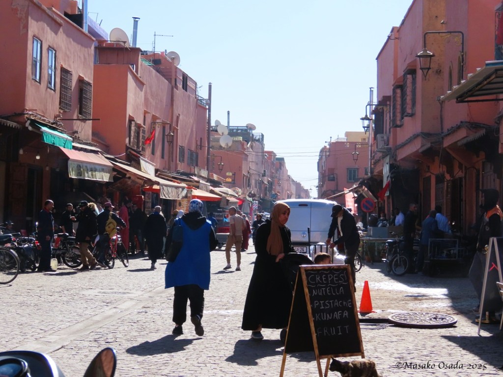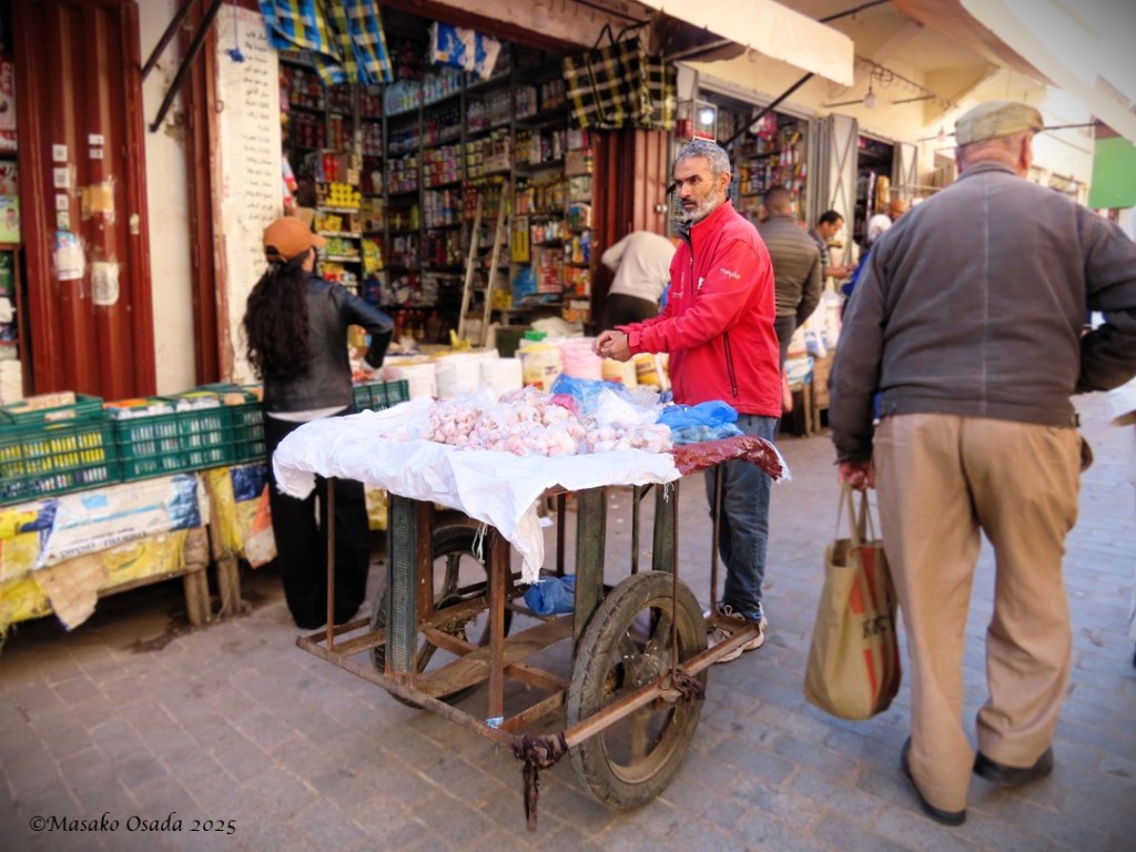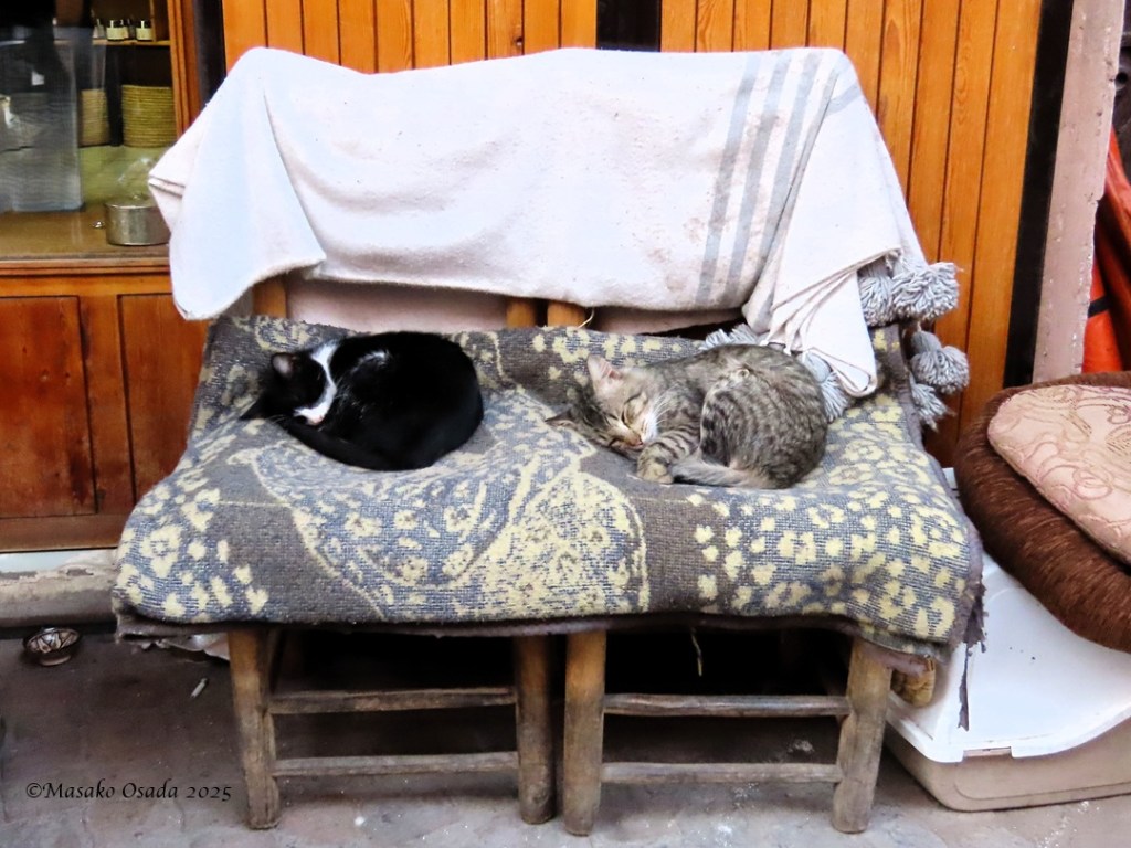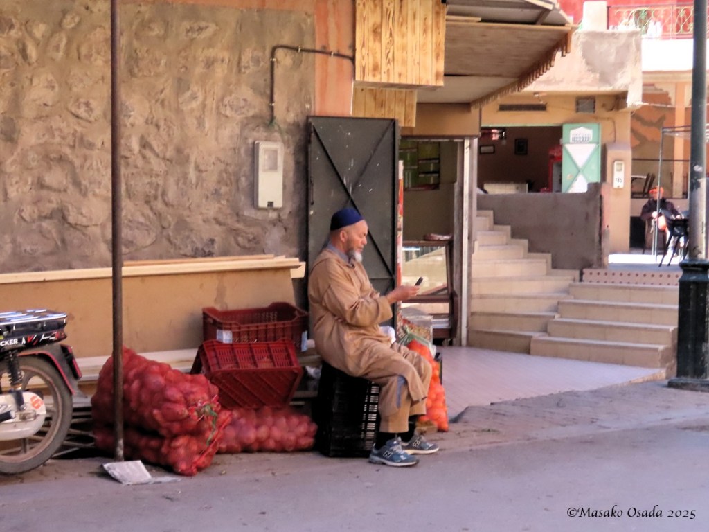 Breakfast time. Marrakech, November 2025Bread seller. Marrakech, November 2025. A big round bread costs 1 dirham.Shop assistant. Marrakech, November 2025Bab Doukkala. Marrakech, November 2025Pretty building. Marrakech, November 2025Doors for sale. Marrakech, November 2025Tiled pillars. Marrakech, November 2025Nuts and beans for sale. Marrakech, November 2025Fruit juice seller. Djemaa El Fna, Marrakech, November 2025Happy cats. Marrakech, November 2025