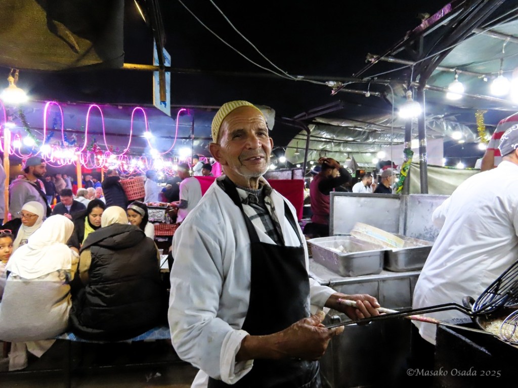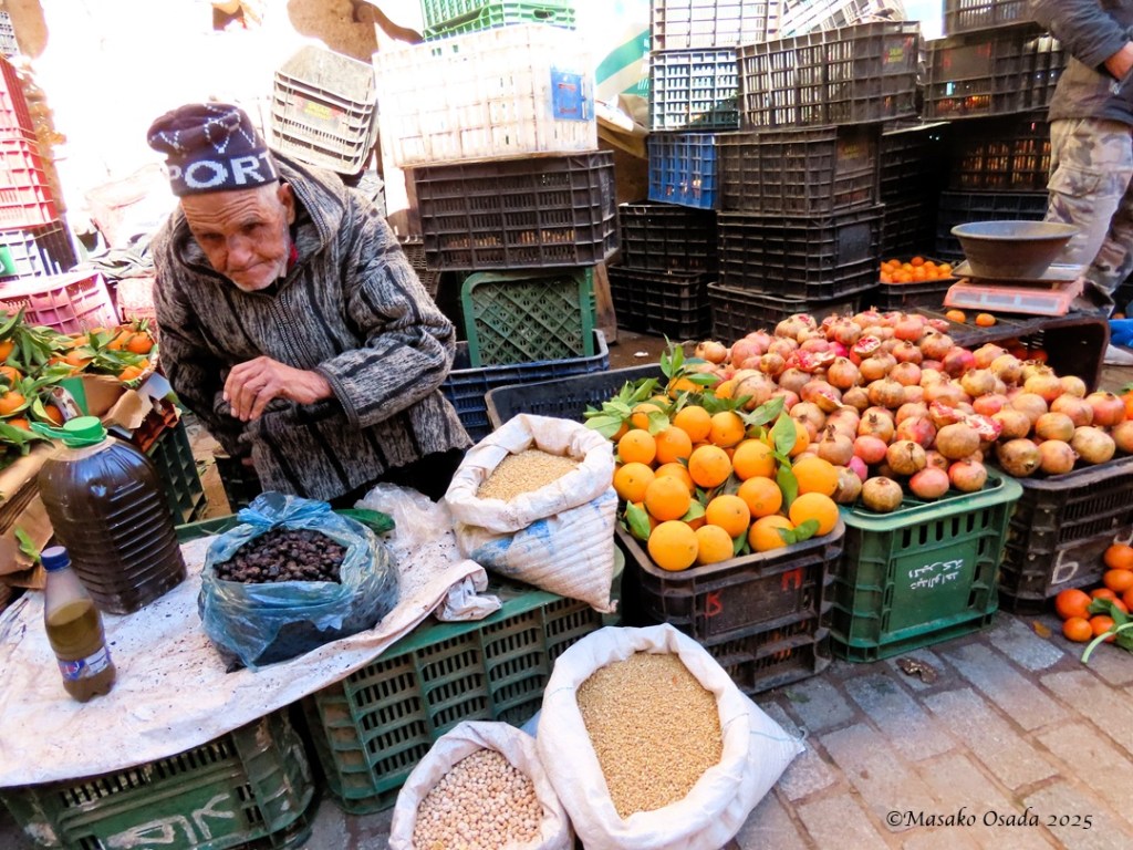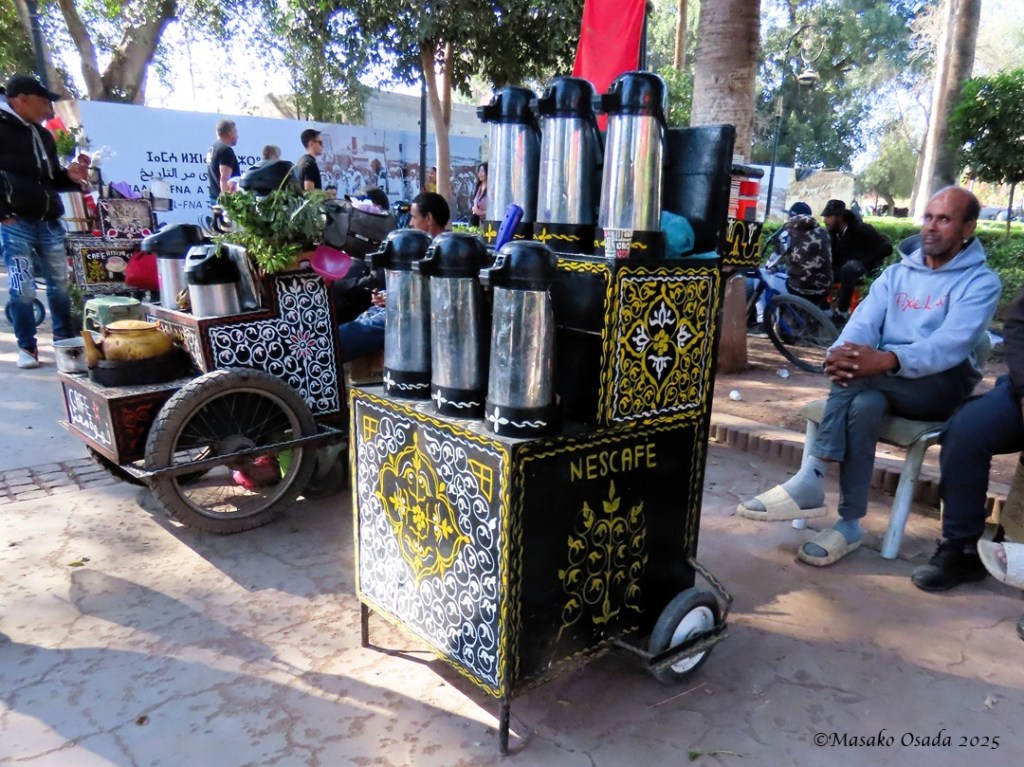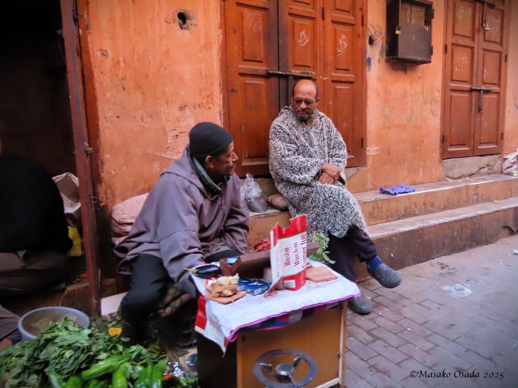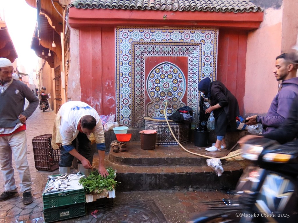 Lady buying freshly baked bread in the morning. Marrakech, November 2025Washing clothes, fish, vegetables at a communal tap. Marrakech, November 2025Wooden door and tiles. Dar El Bacha, Marrakech, November 2025Herbalist. Marrakech, November 2025Old man walking in the park. Marrakech, November 2025Coffee seller in the park. Marrakech, November 2025My favourite fish restaurant “Chez Qrita”. Djemaa El Fna, Marrakech, November 2025Herbs in beautiful sacks. Marrakech, November 2025