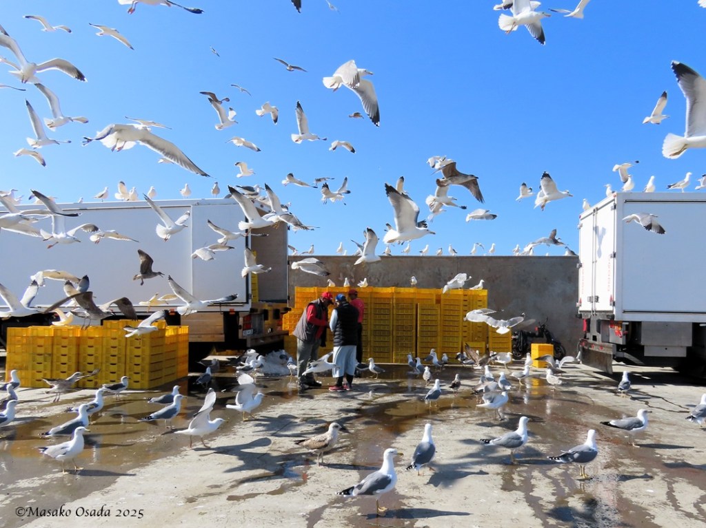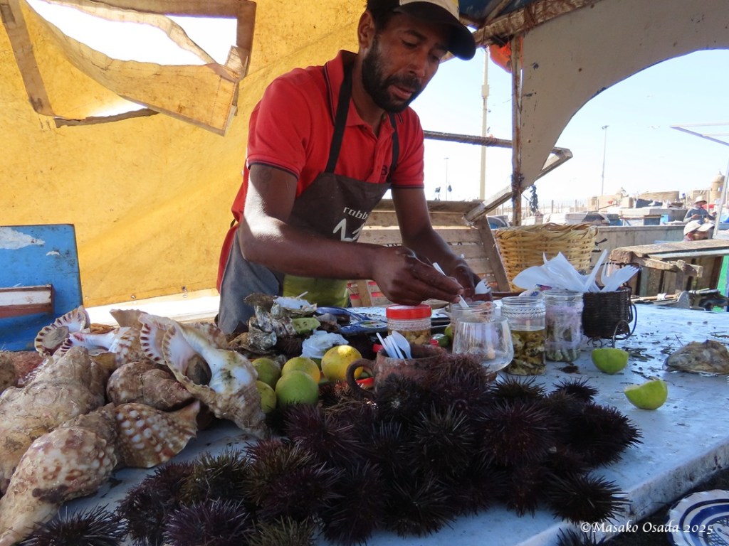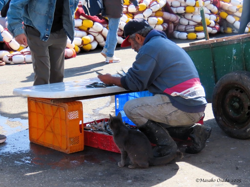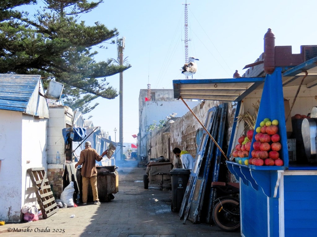Cat. Essaouira, November 2025Balloon and toy seller. Essaouira, November 2025Alley. Essaouira, November 2025Ramparts and a fishing boat. Essaouira, November 2025Snack seller. Essaouira, November 2025. Marinated fish, sea urchin, etc.Very excited seagulls. Essaouira, November 2025Cat waiting for his fish. Essaouira, November 2025Old man. Essaouira, November 2025“We lead the avant-garde, this is our soft power”. Essaouira, November 2025
